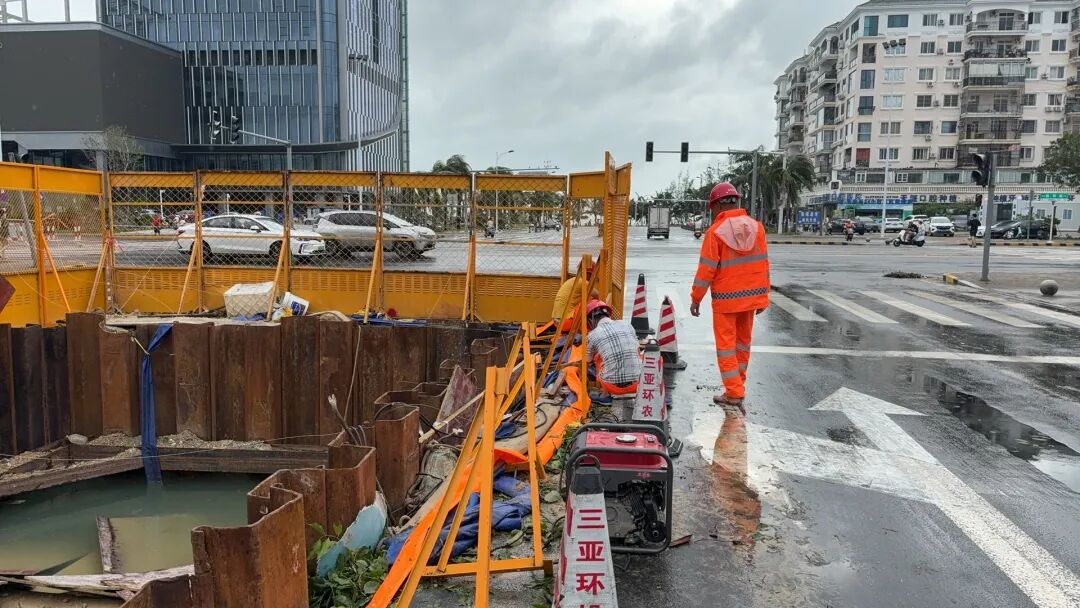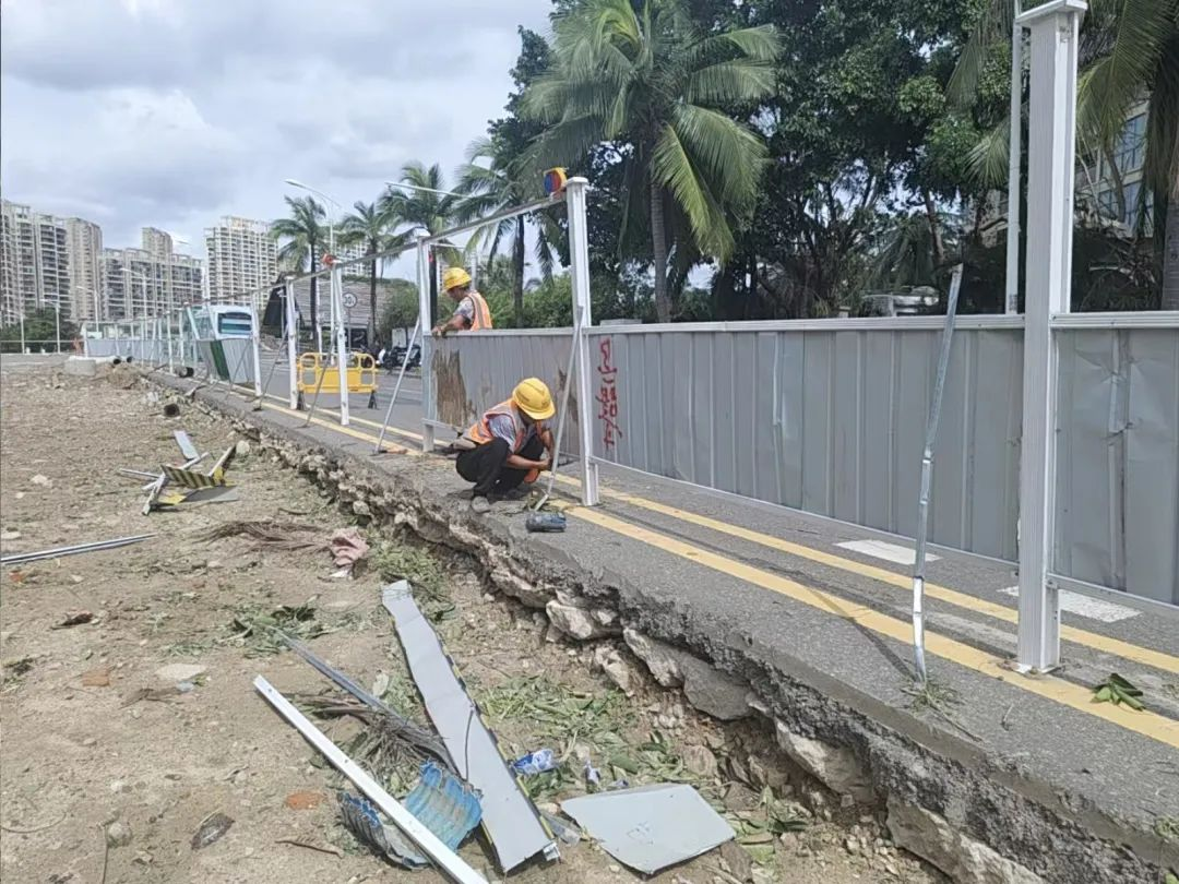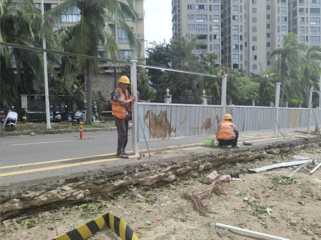 受臺風“劍魚”影響,強風暴雨導致部分項目出現(xiàn)臨時施工板房破損、圍擋傾斜、基坑進水、材料散落等問題。臺風過境后,環(huán)通公司安排專人深入各項目工地,開展“拉網(wǎng)式”災情排查,全面掌握受災情況,重點清理倒伏樹木、破損圍擋等路面障礙,對板房、圍擋進行更新修補和加固,同時加速排除基坑積水,確保發(fā)現(xiàn)的各類隱患全部完成整改。