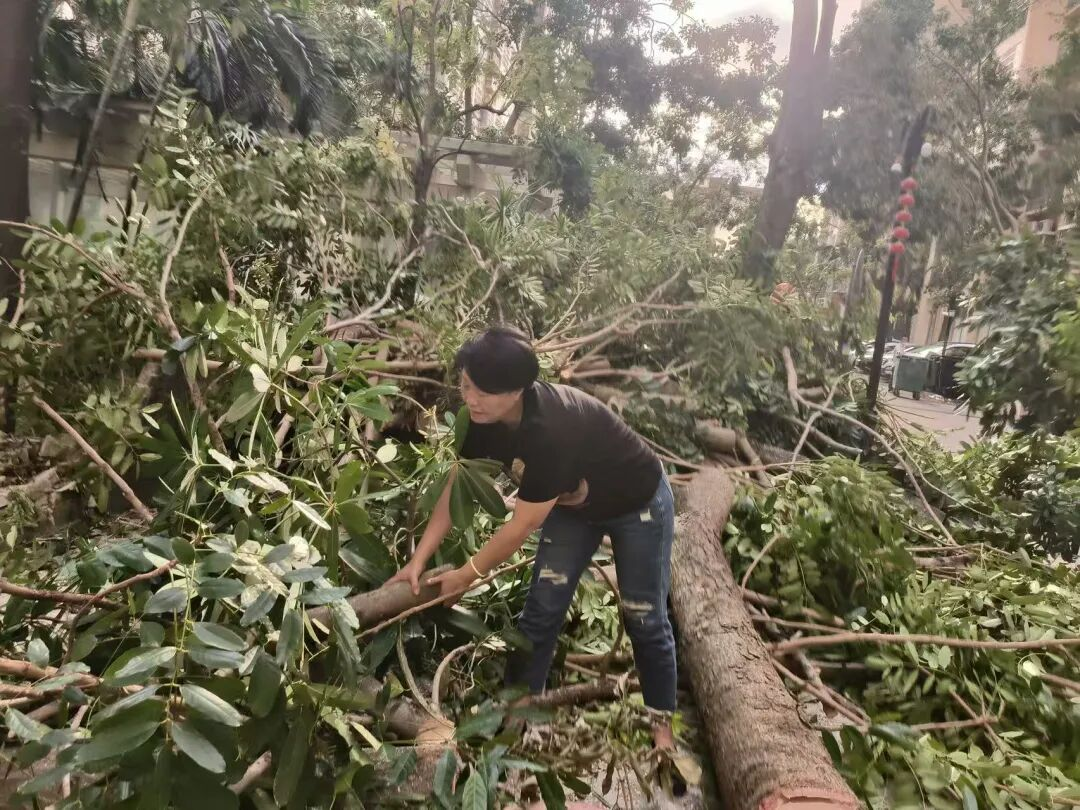 臺(tái)風(fēng)過境后,三亞各小區(qū)一片狼藉,斷水、斷電、垃圾堆積等問題嚴(yán)重影響業(yè)主生活,恢復(fù)秩序刻不容緩。已通宵值班的唐春燕同志顧不上休息,第二天一早便按照南新實(shí)業(yè)公司黨總支“快速恢復(fù)、保障民生”的工作部署,協(xié)助公司經(jīng)理制定災(zāi)后重建工作方案,組織人員科學(xué)分組,明確“先保通行、再保民生、同步保障辦公”的工作優(yōu)先級(jí),帶領(lǐng)團(tuán)隊(duì)全力投入清理與搶修。