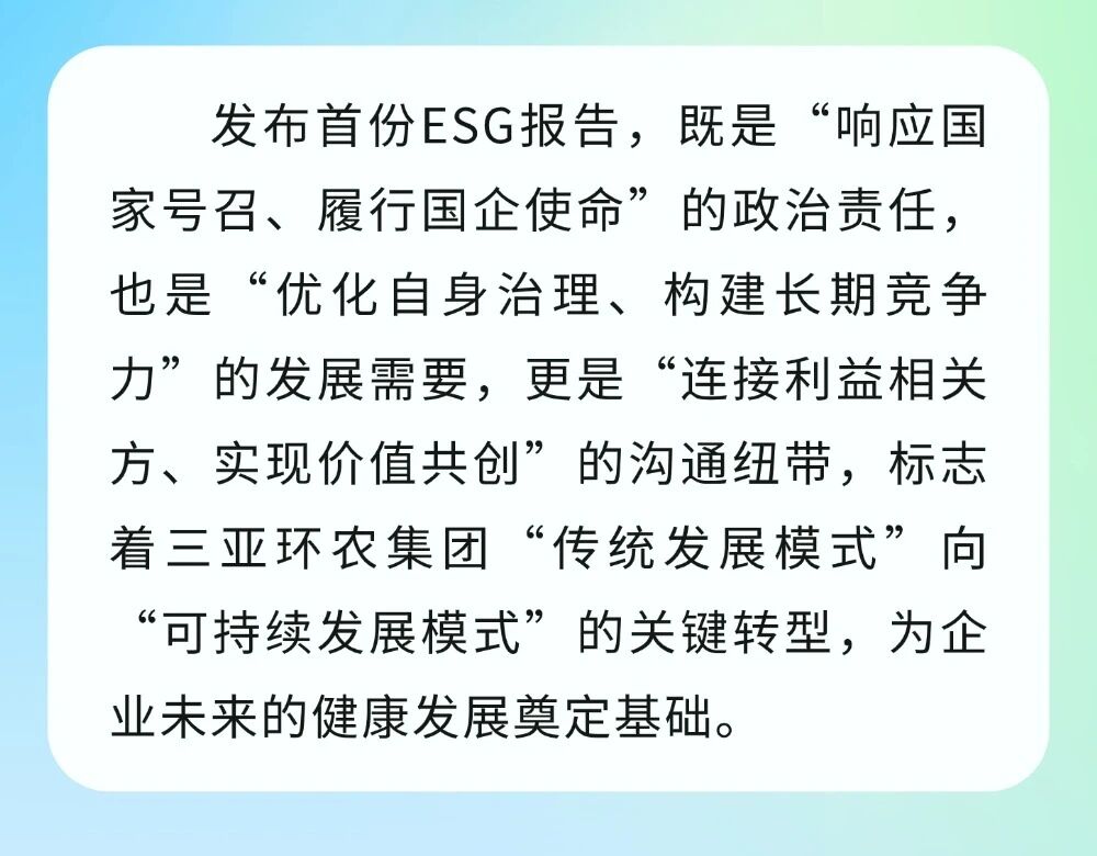 三亞環(huán)農(nóng)集團(tuán)首次發(fā)布ESG報(bào)告 開啟可持續(xù)發(fā)展新篇章
