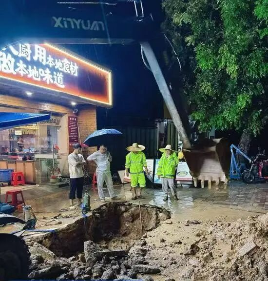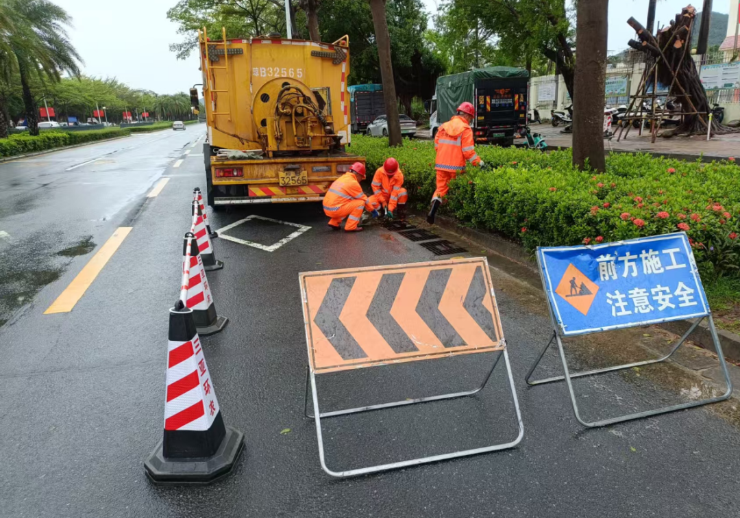 10月6日,三亞普降暴雨,管網(wǎng)公司接到市交警、住建部門發(fā)來馬嶺派出所積水信息,雖然該路段不是公司權(quán)屬保障范圍,但為了解決路段積水問題,保障道路通行,公司即刻安排工作人員和疏通車輛前往現(xiàn)場支援,協(xié)助加快路面排水進度。