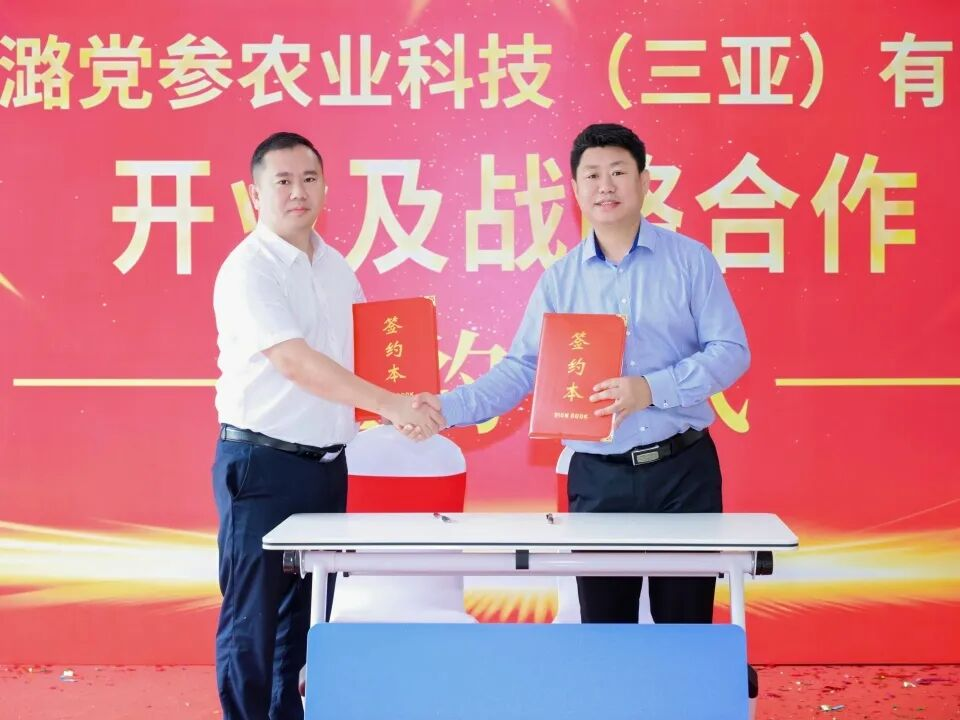 揭牌儀式后,曾山副書記代表南繁潞黨參農(nóng)業(yè)科技(三亞)有限公司與真奧藥業(yè)集團簽訂戰(zhàn)略合作協(xié)議,約定潞黨參種苗采購、建立研發(fā)基地及規(guī)模化生產(chǎn)等事宜,雙方將以“國企+科創(chuàng)”強強聯(lián)手,打開“種質(zhì)創(chuàng)新—智慧擴繁—訂單回收”全鏈路的新局面。
